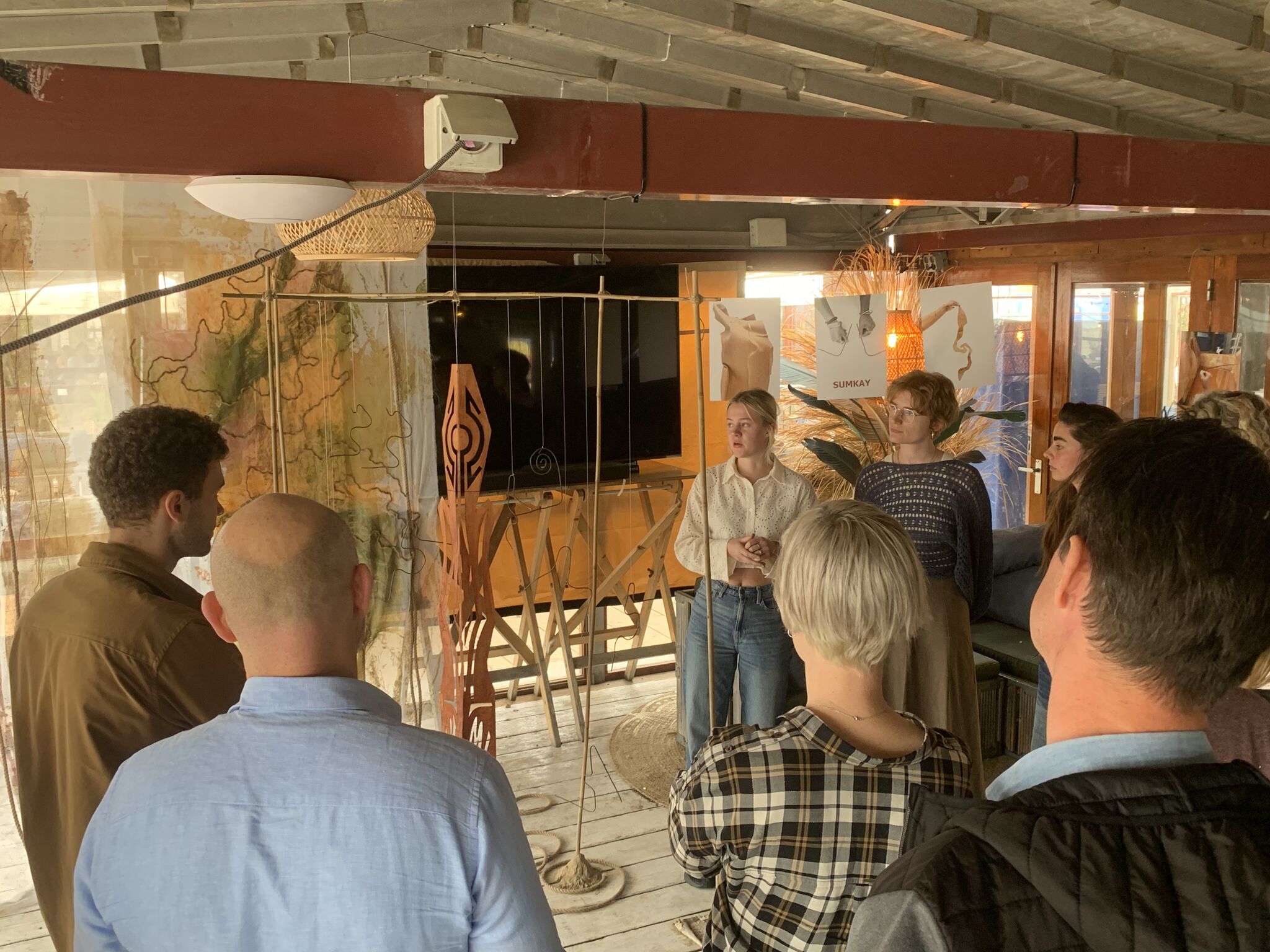 Het werk “Sumkay” over communicatie met de natuur door Britt, Noa en Anneroos. Met veel onderzoek naar (inheemse) communicatie met bomen en natuurlijk afbreekbare kunst. De natuur spreekt, maar alleen voor hen die durven te luisteren.